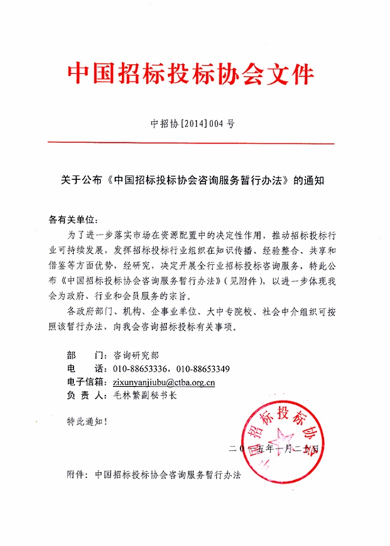 ob欧宝中国(中国)网站首页公布《中国招标投标协会咨询服务暂行办法》的通知