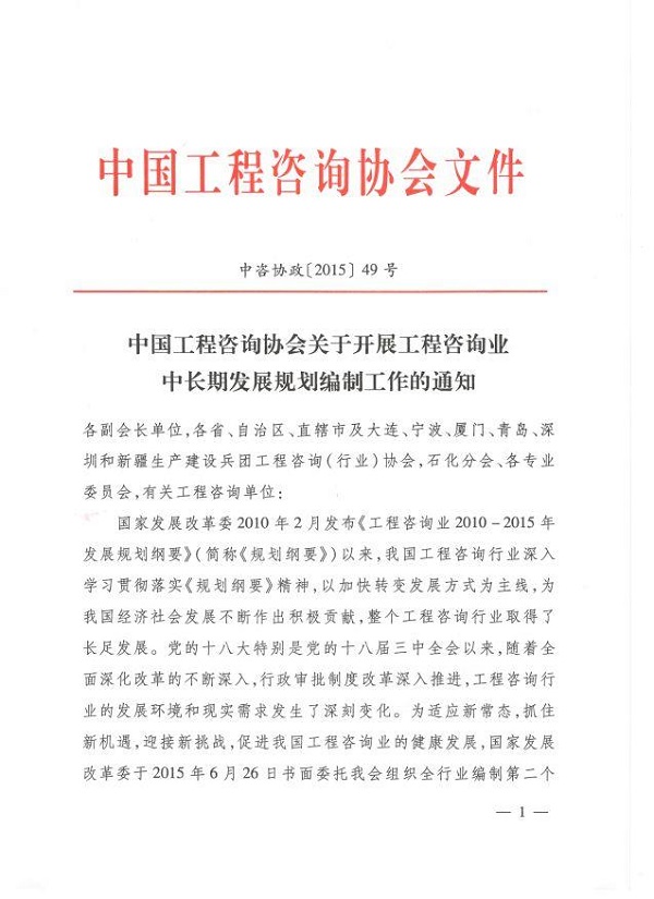 中国工程咨询协会ob欧宝中国(中国)网站首页开展工程咨询业中长期发展规划编制工作的通知