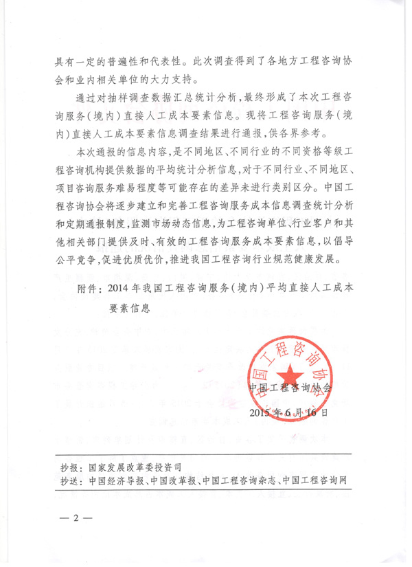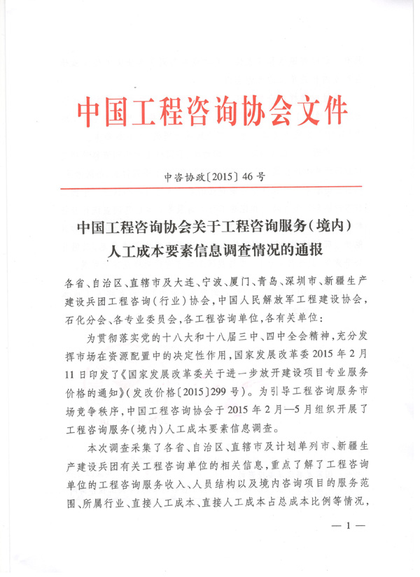 中国工程咨询协会ob欧宝中国(中国)网站首页工程咨询服务(境内)人工成本要素信息调查情况的通报