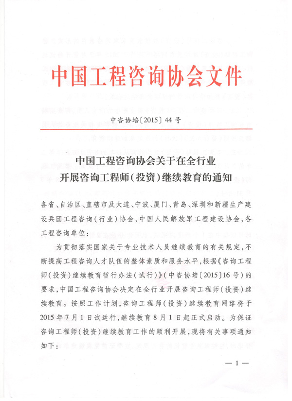中国工程咨询协会ob欧宝中国(中国)网站首页在全行业开展咨询工程师(投资)继续教育的通知