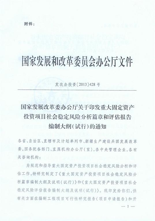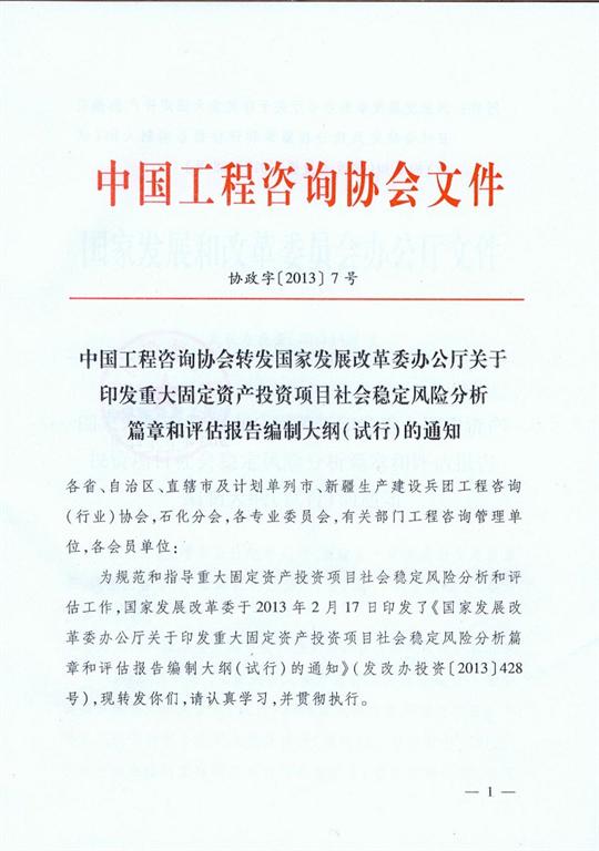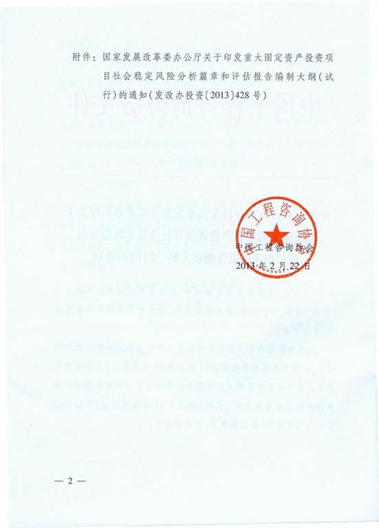中国工程咨询协会转发国家发展改革委办公厅ob欧宝中国(中国)网站首页印发重大固定资产投资项目社会稳定风险分析篇章和评估报告编制大纲(试行)的通知