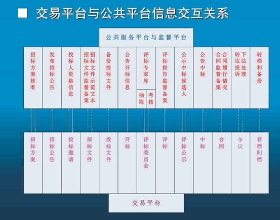 公共服务平台是满足交易平台之间招标投标市场信息交换、整合和共享需要,为市场主体、行政监督部门和社会公众提供信息服务,并为行政部门履行监督职责提供监督通道服务。主要具有社会公益性服务功能,兼有招标投标活动的第三方中介服务功能。