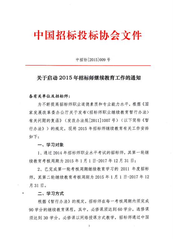 ob欧宝中国(中国)网站首页启动2015年招标师继续教育工作的通知